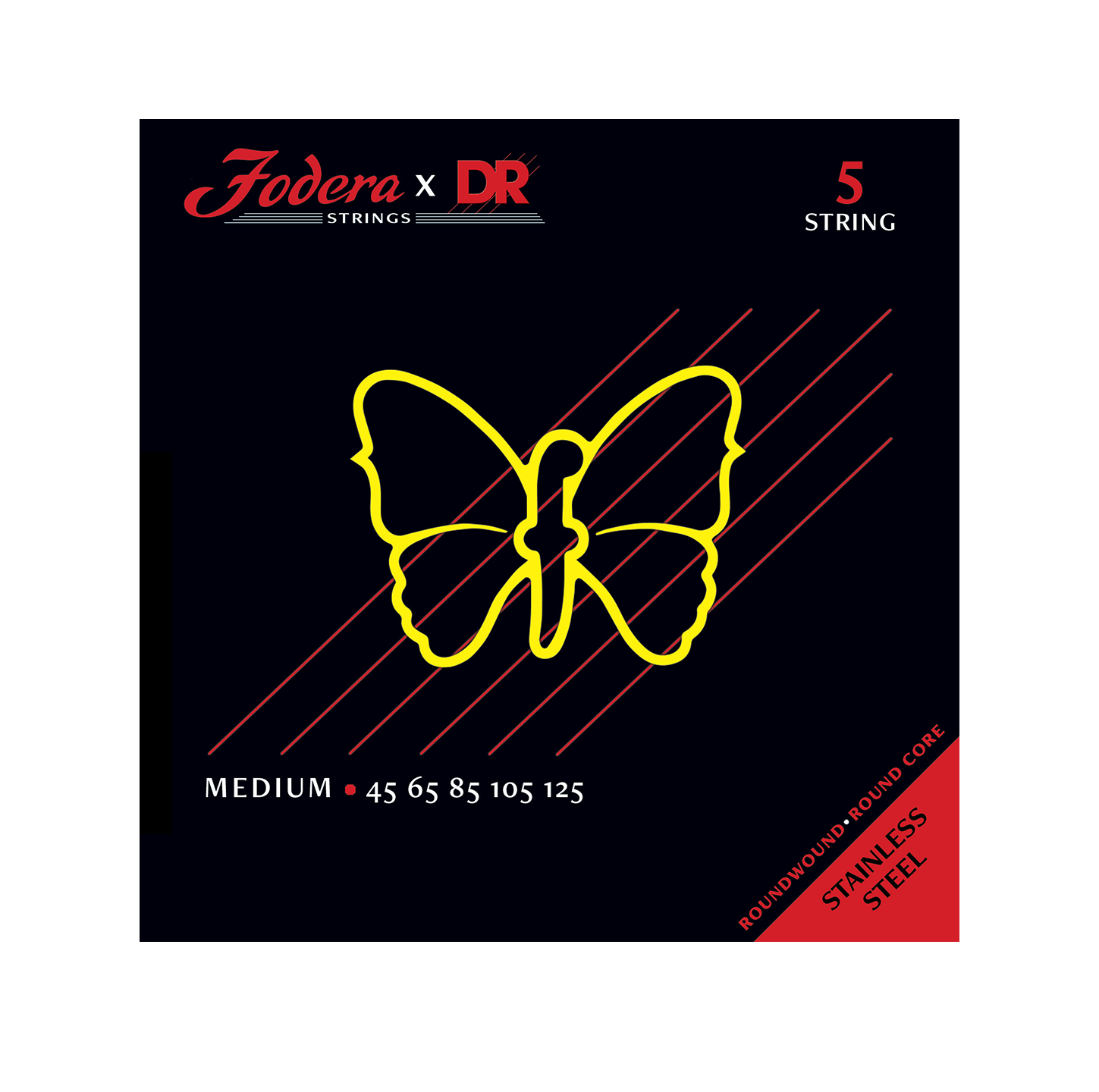 Fodera x DR Handmade Bass Guitar StringsFodera x DR Strings combine Fodera’s unique specs with the renowned manufacturing expertise of DR Strings. Fodera x DR Strings are handmade using the finest materials available featuring a round high carbon steel core with compression winding for balanced tension and optimal response. We are proud to offer these exceptional strings for you to enjoy!