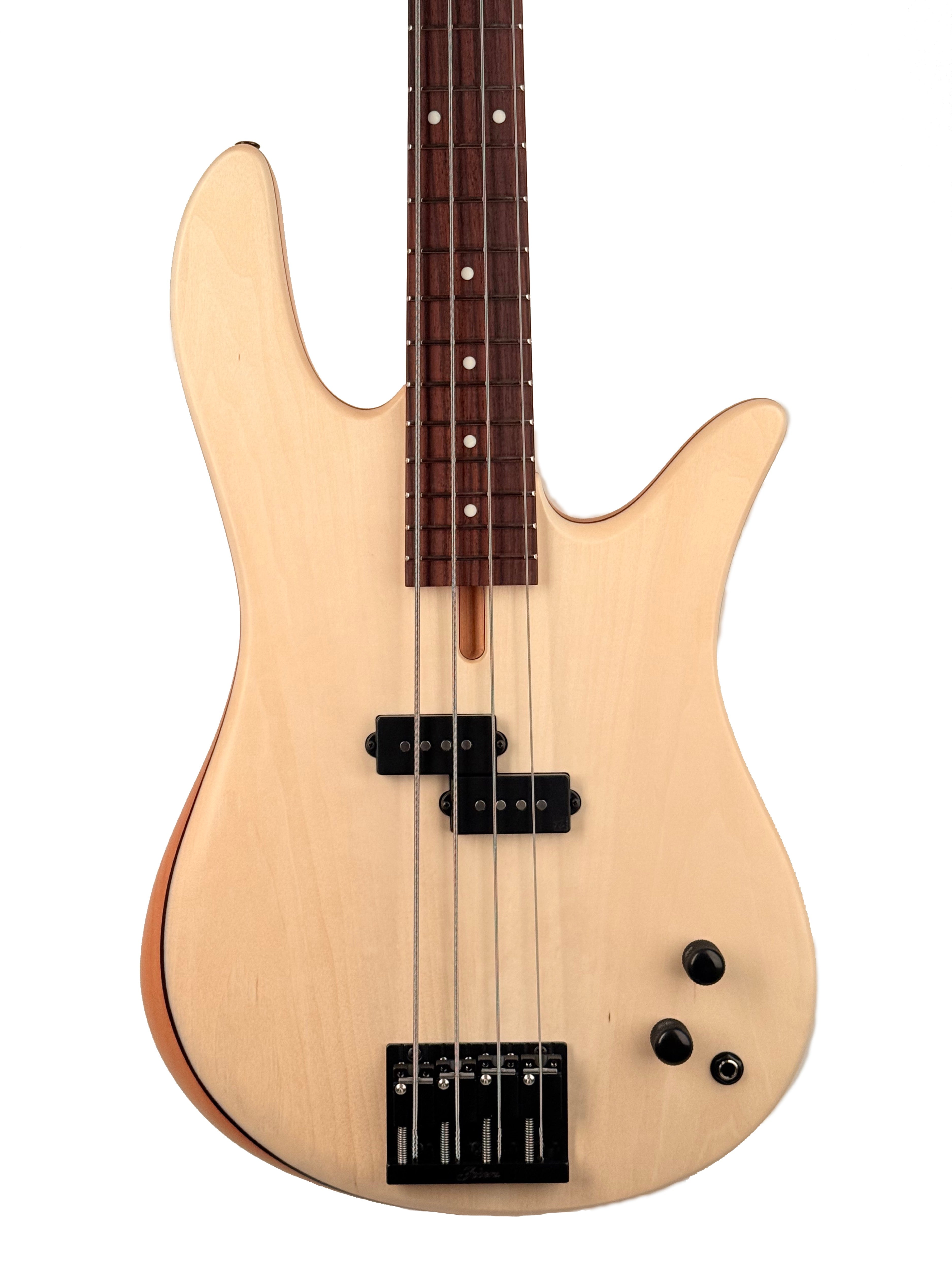 The P Standard has its roots in on our Monarch body shape, but has its own unique contours. It utilizes the classic tonewood combination of an alder body and a maple neck with a rosewood fingerboard (Indian, but features the added Fodera touch of an Ivorywood top. The P's 22-fret neck is built to dimensions that are slightly thicker than that of a typical Monarch Standard, giving it more of a 60s era feel.