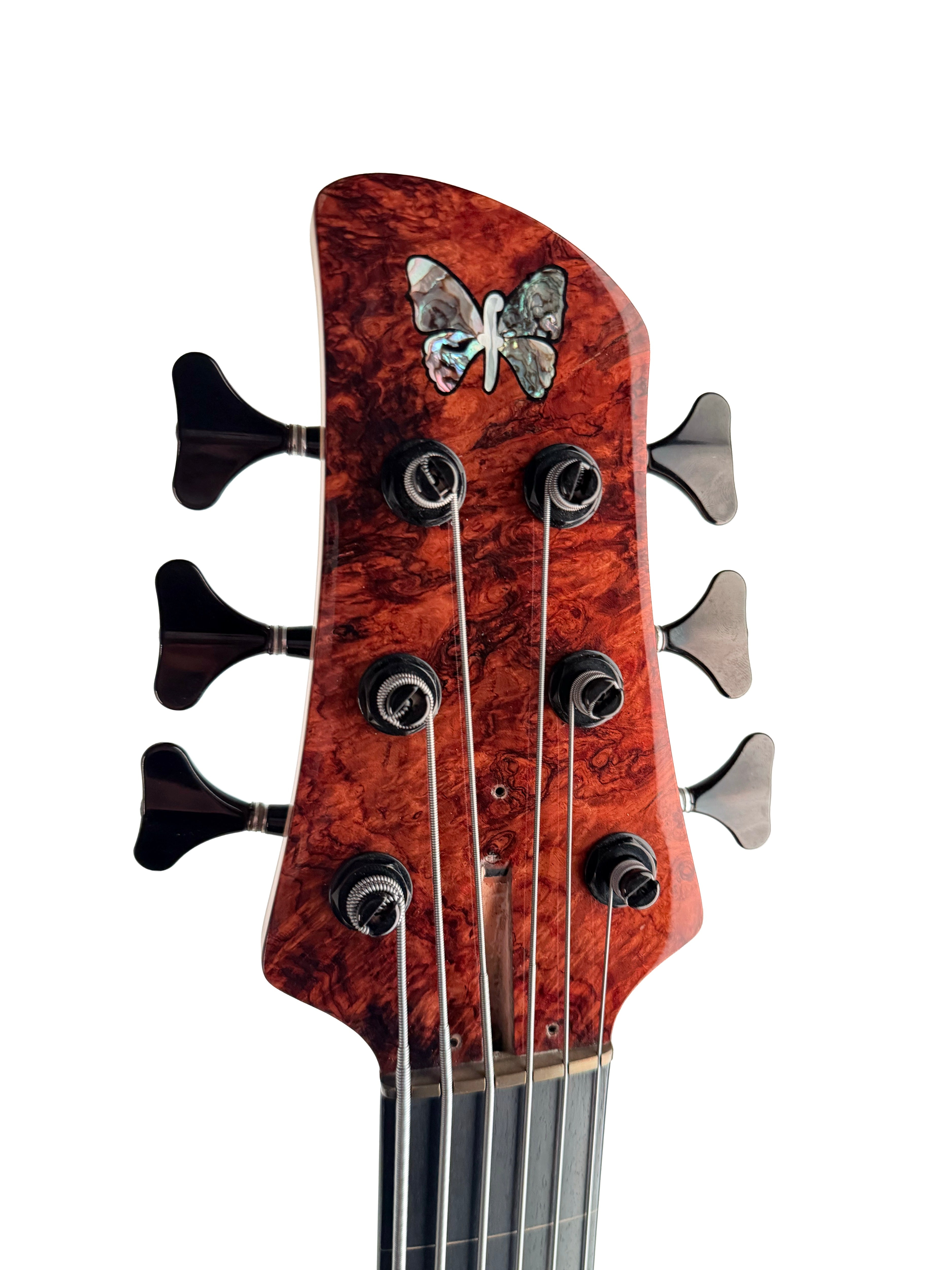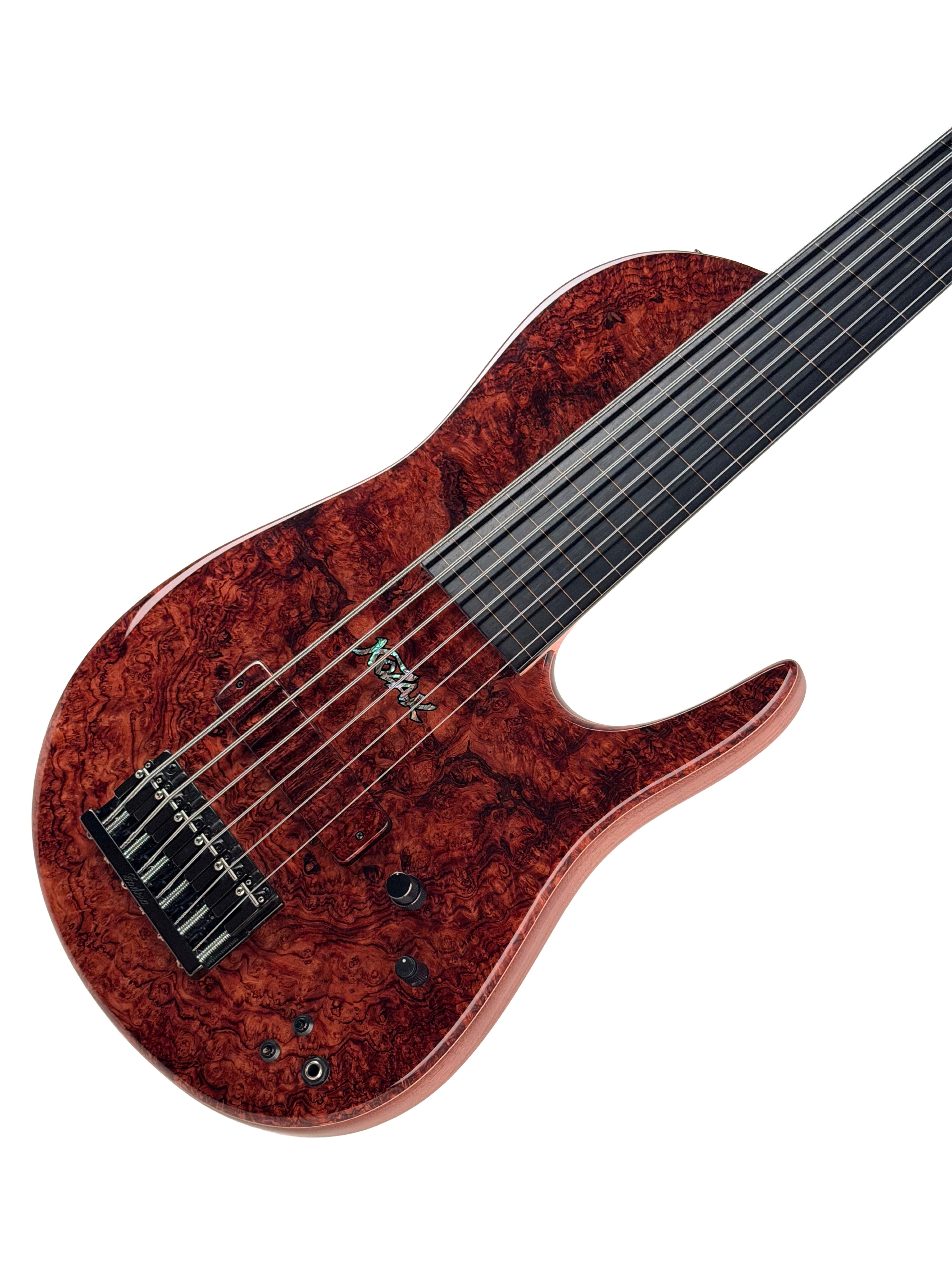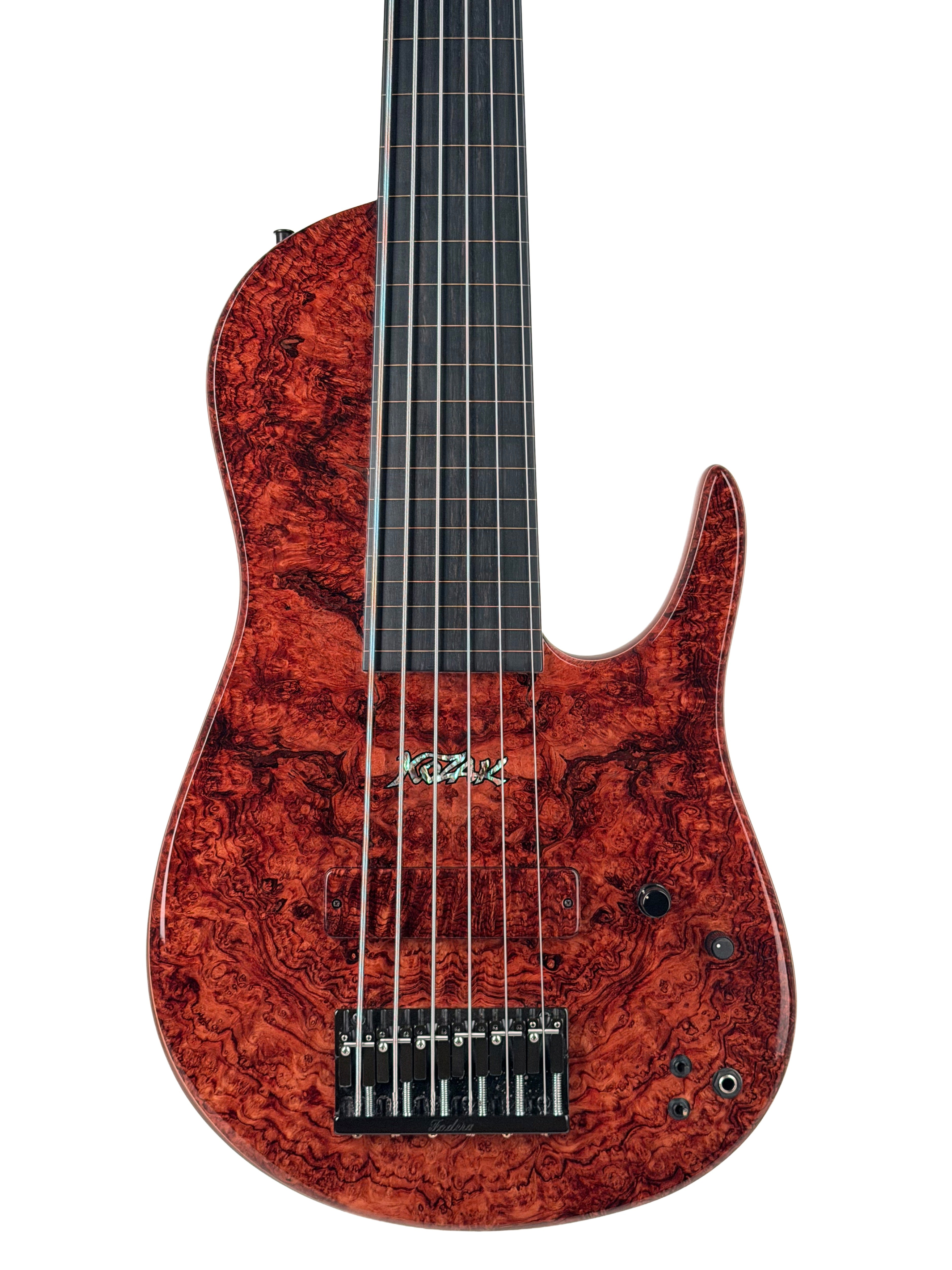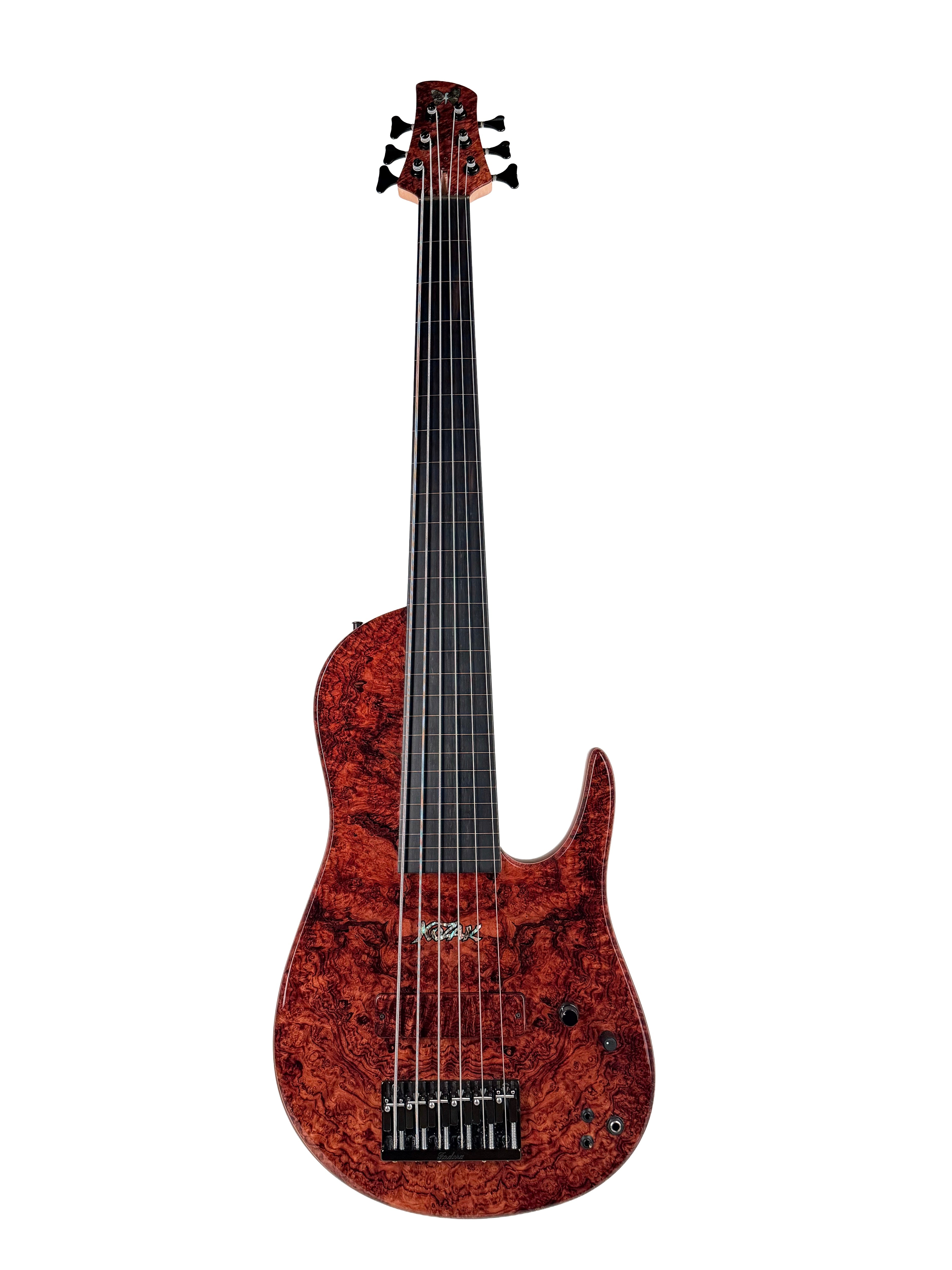 This used Anthony Jackson Presentation 6 Elite was completed in 2002. It features a Walnut body and tone block, Brazilian Rosewood Burl top, and 5-piece maple neck under an Ebony fingerboard. It has some light dings and wear from over 20 years of use, giving it that comfortable, broken-in vintage vibe. For a more detailed descriptions or if you have any questions please email info@fodera.com.