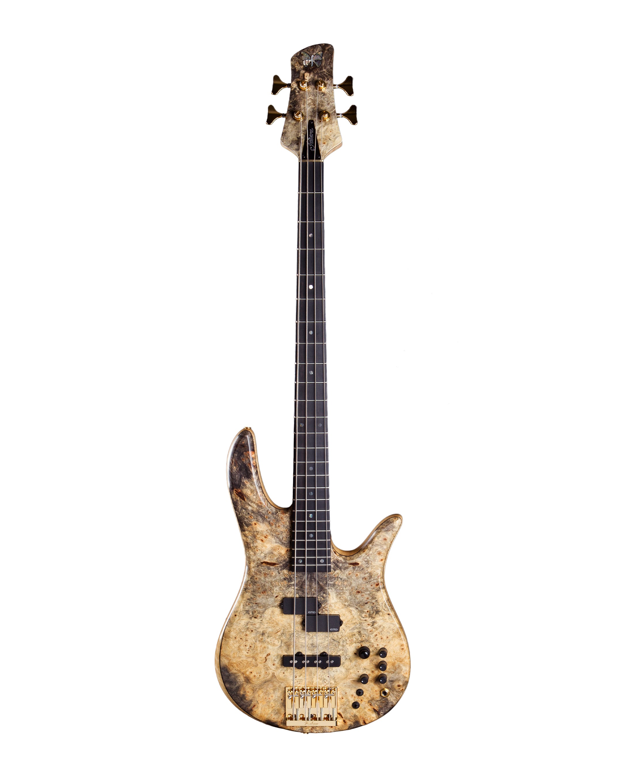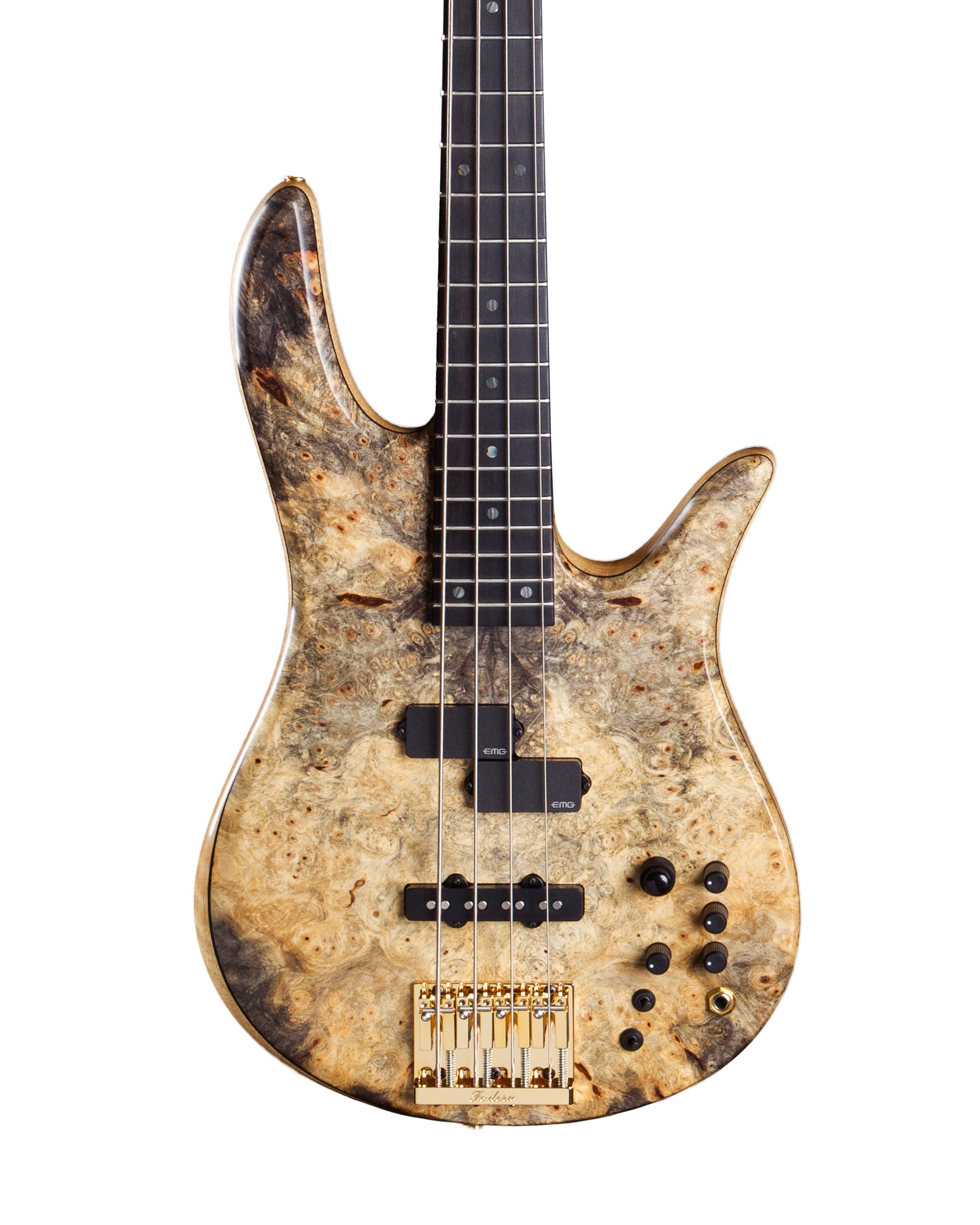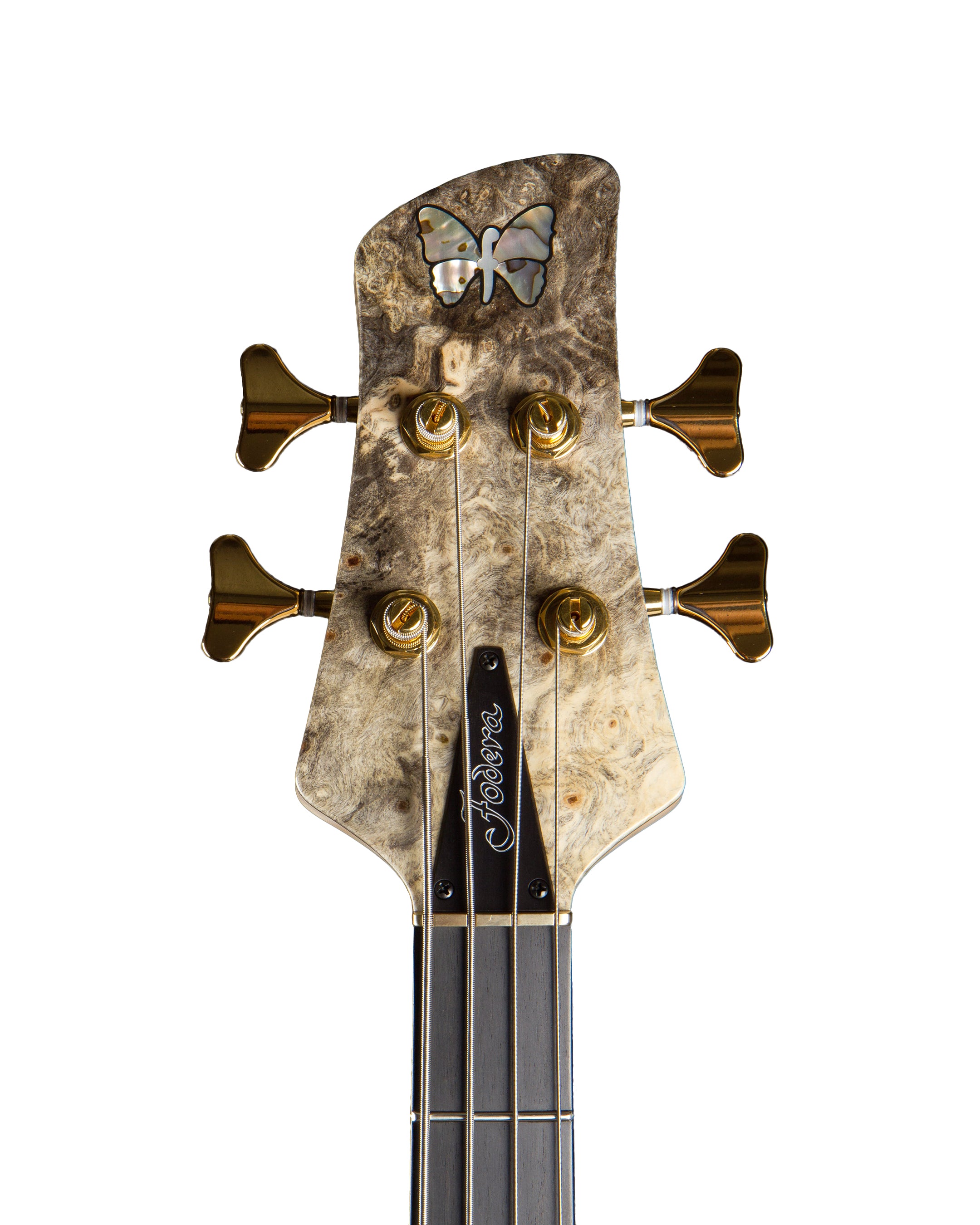 This stunning Monarch 4 Deluxe represents the new signature model for Michel Labaki (a.k.a. “Labex”) — one of the Middle East’s A-List Bass Players.What makes Michel’s instrument special from a tonal standpoint is the use of Korina as a body wood paired with an Ebony fingerboard. The Korina that was used for Michel’s instrument was harvested in the late 1950’s and has been in our shop since the late 1980’s — making it extremely dry, stable, and resonant. In the electronics department we have employed an active EMG P-PUP in the neck position and a passive Lindy Fralin lateral humbucking J-PUP in the Bridge position. This combination requires a buffer board to be added to our Fodera / Pope Custom Shop Preamp so that the output levels of the two pickups can be appropriately matched.