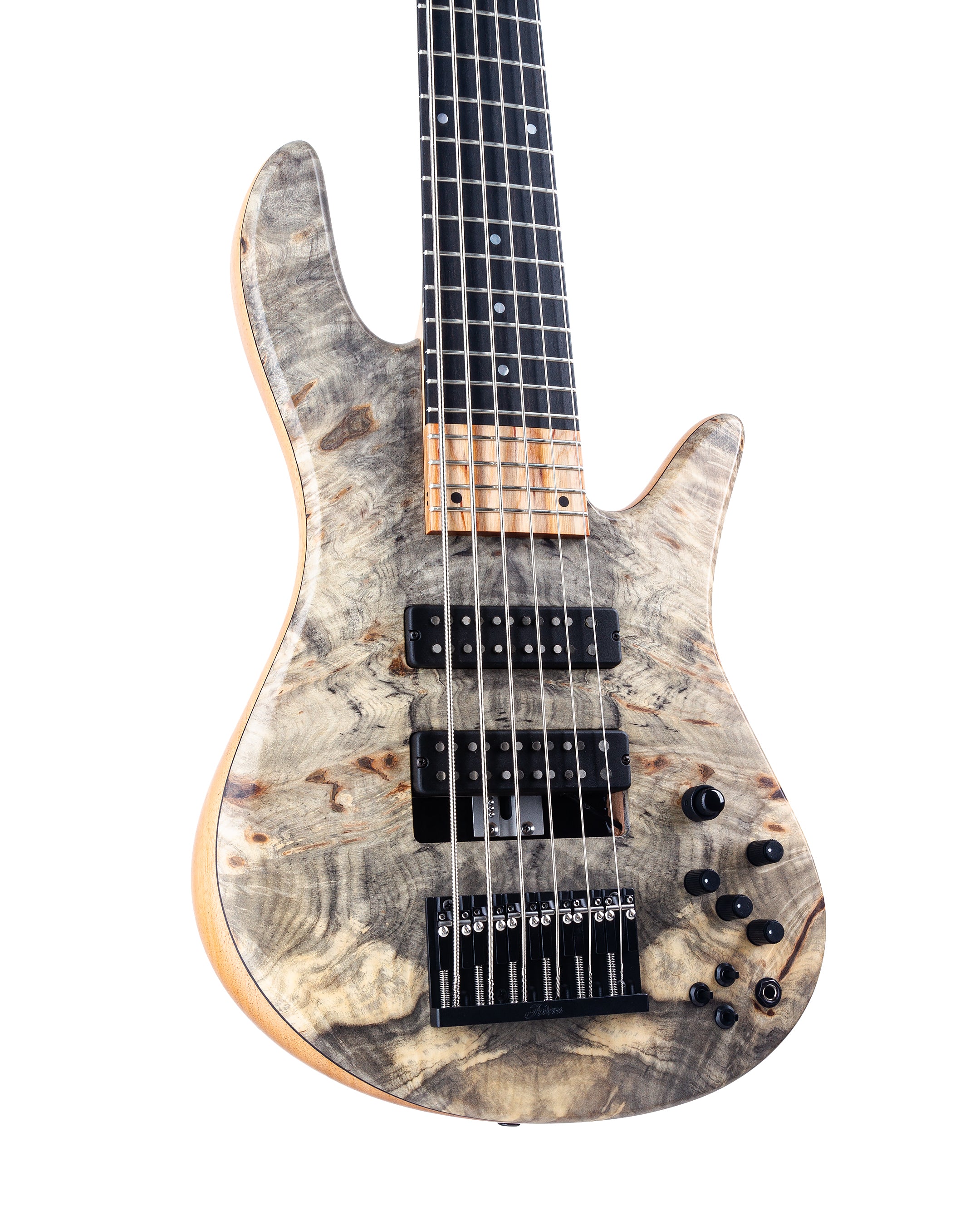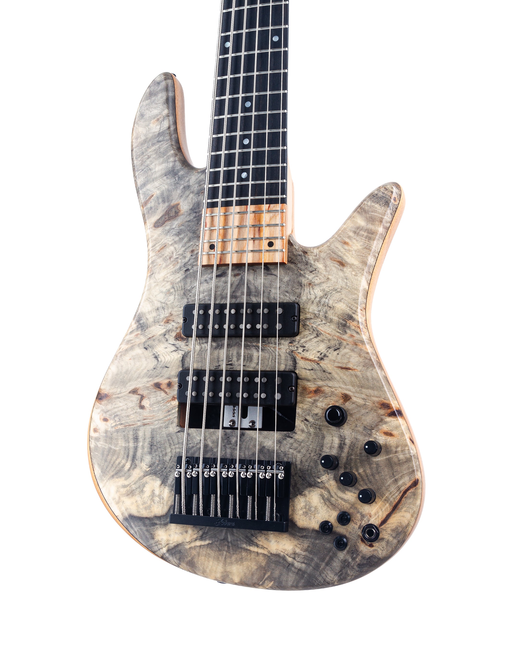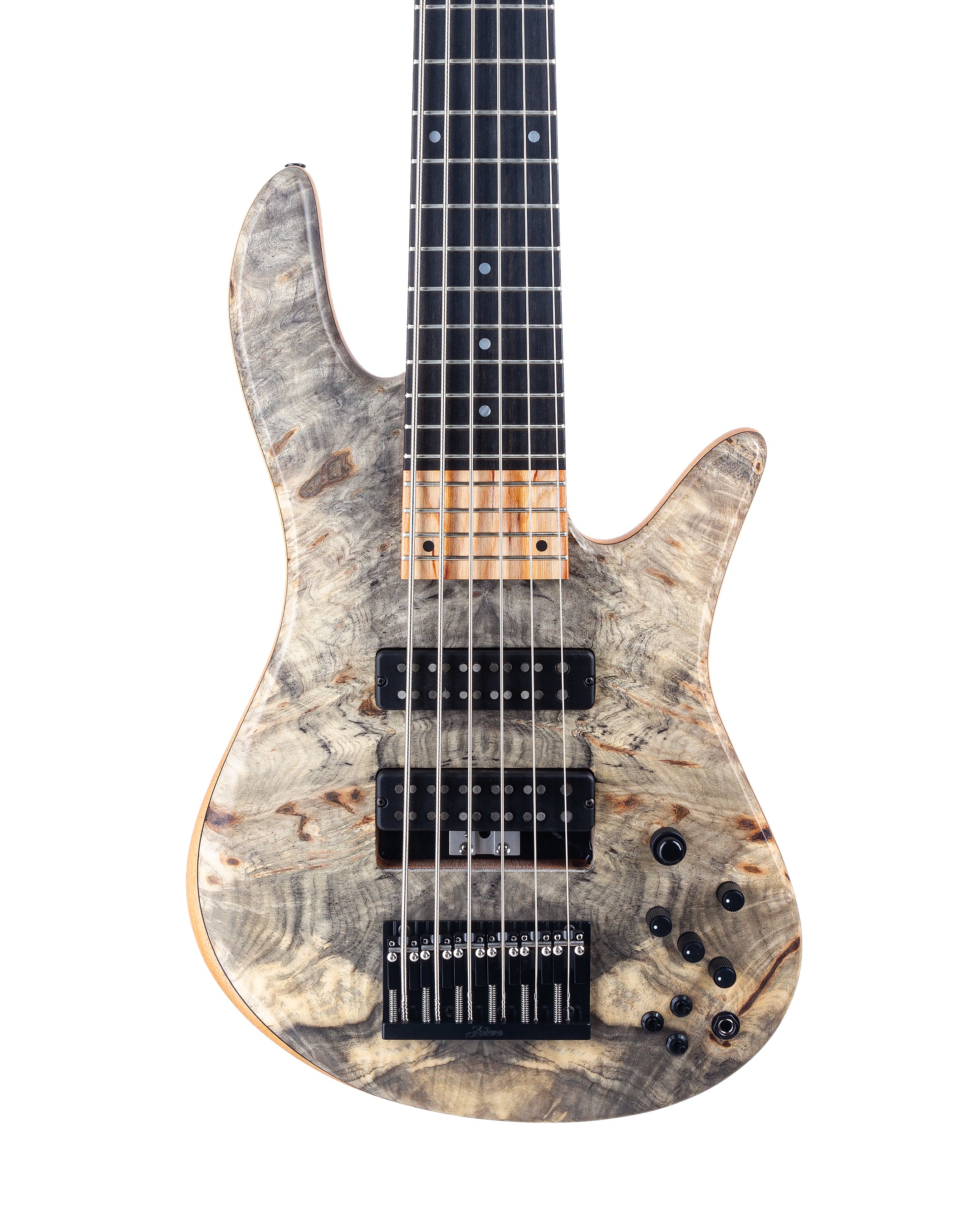 Designed in close consultation with our good friend and renowned bass player, Mike Pope, the Fodera Viceroy is intended to be the most tonally versatile Fodera electric bass guitar ever built. It’s shape draws inspiration from our ever-popular Monarch and Emperor lines and was requested by Mike because he wanted an offset body…but one that was less offset than the Emperor. A Honduran Mahogany body was used in combination with a Pommele Sapele (or comparably dense) top because of their relative tonal neutrality — thereby allowing adjustments to both the removable fingerboard extension and movable bridge pickup to make the maximum possible impact on the overall tonal character of the Viceroy.