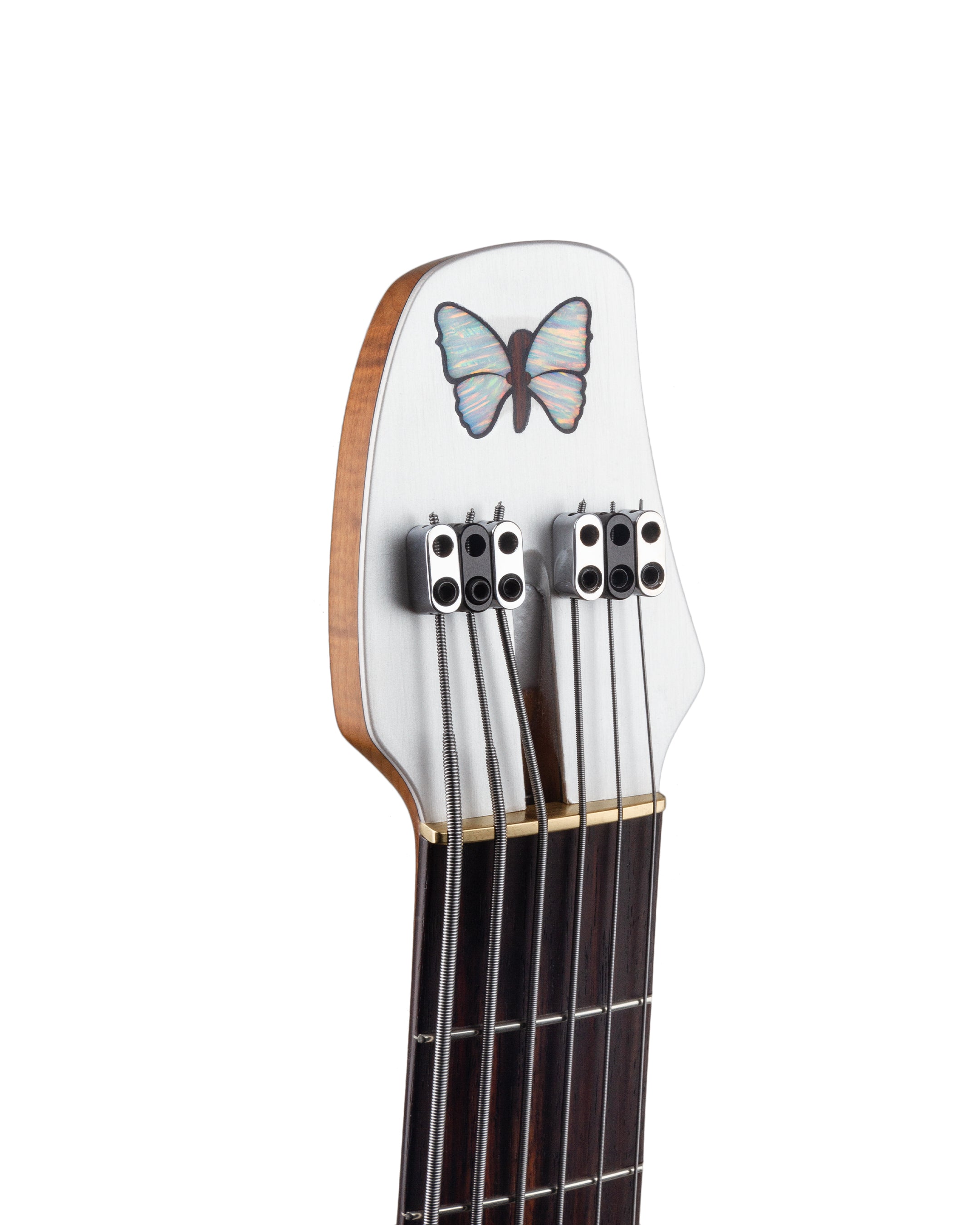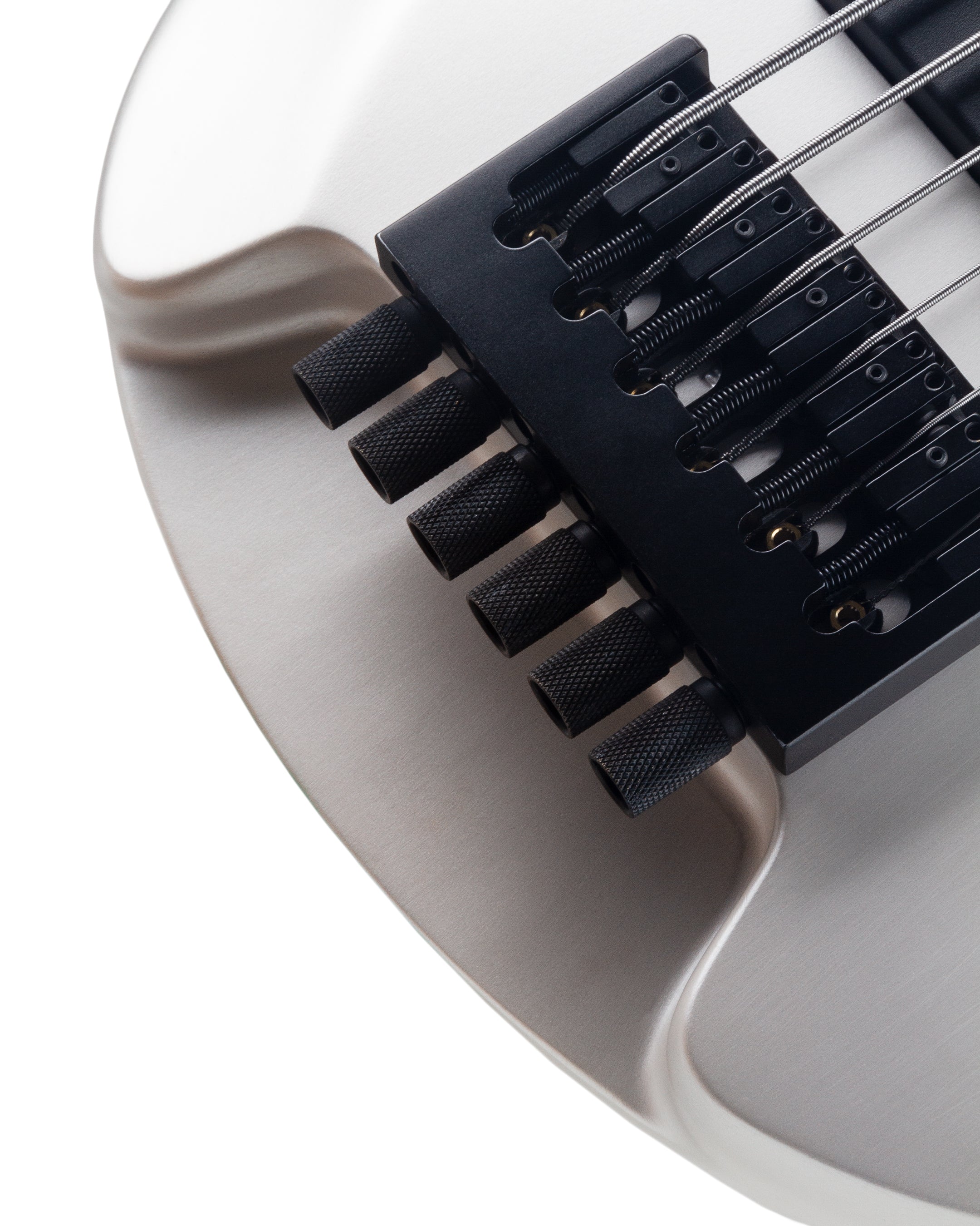 This futuristic new model combines a number of new and cutting-edge innovations and concepts from a collaborative effort between Mike Bendy, Vinny Fodera, Joey Lauricella, and the Fodera Team. It represents a bold step forward in both sound and design.