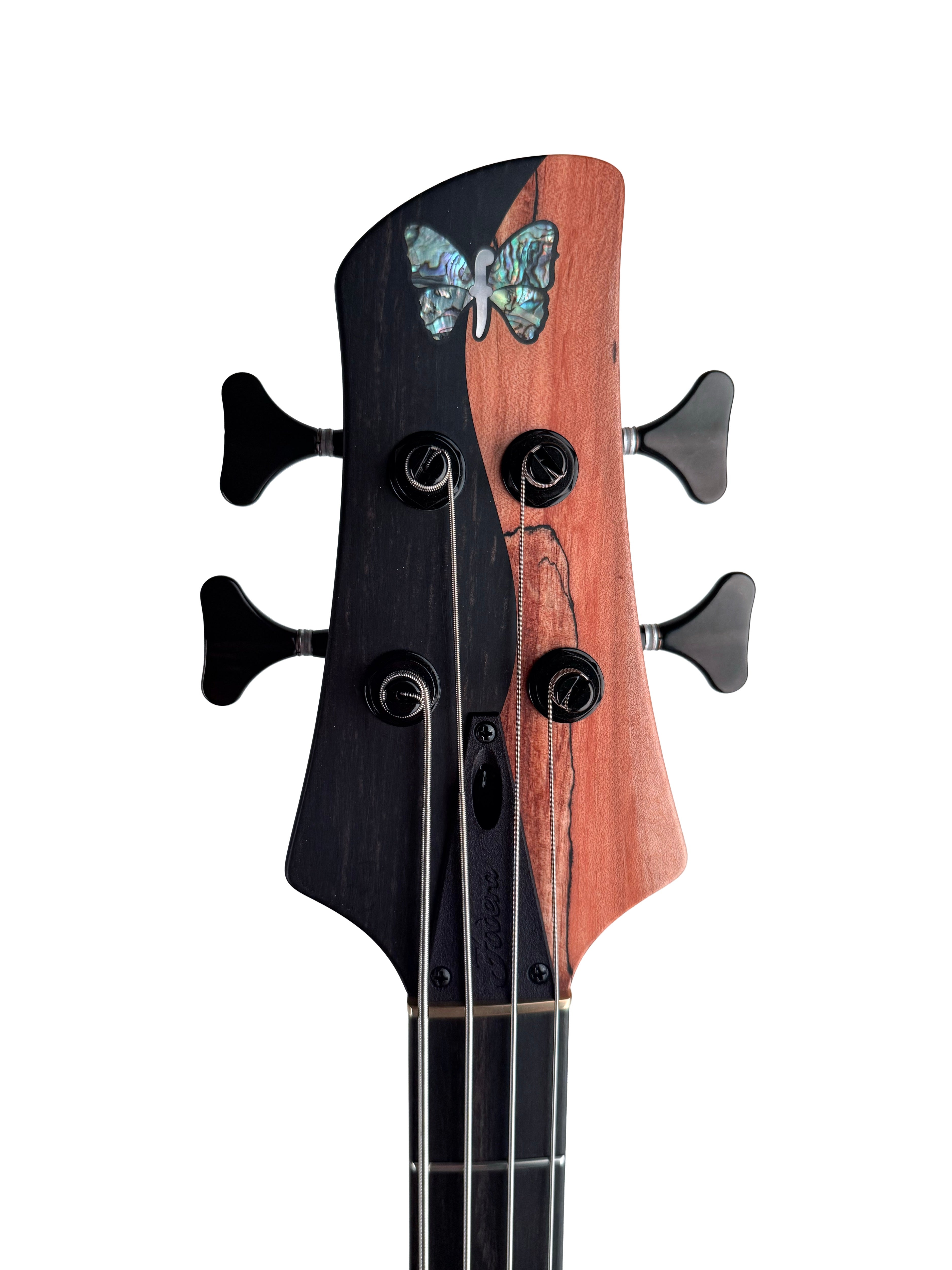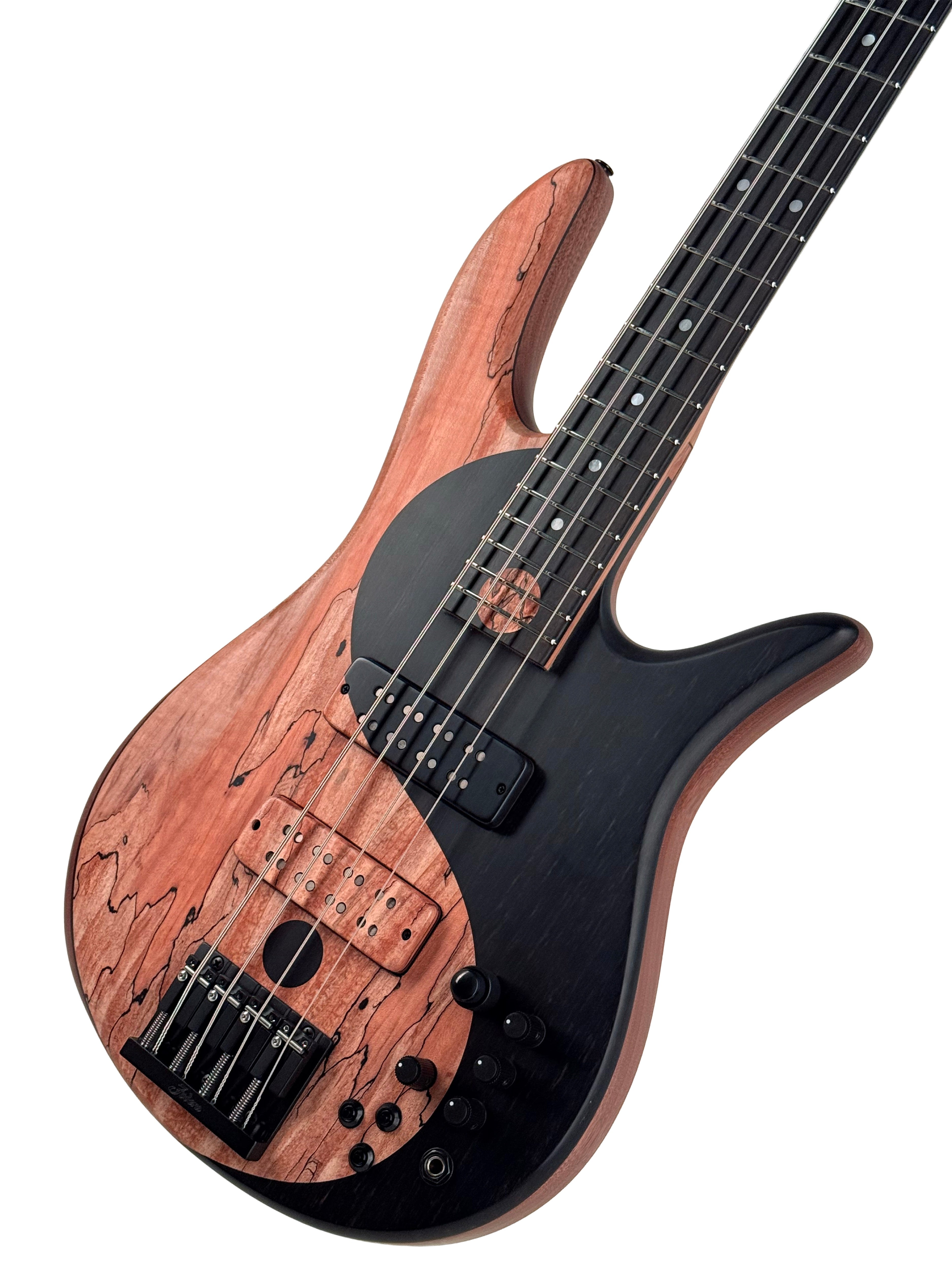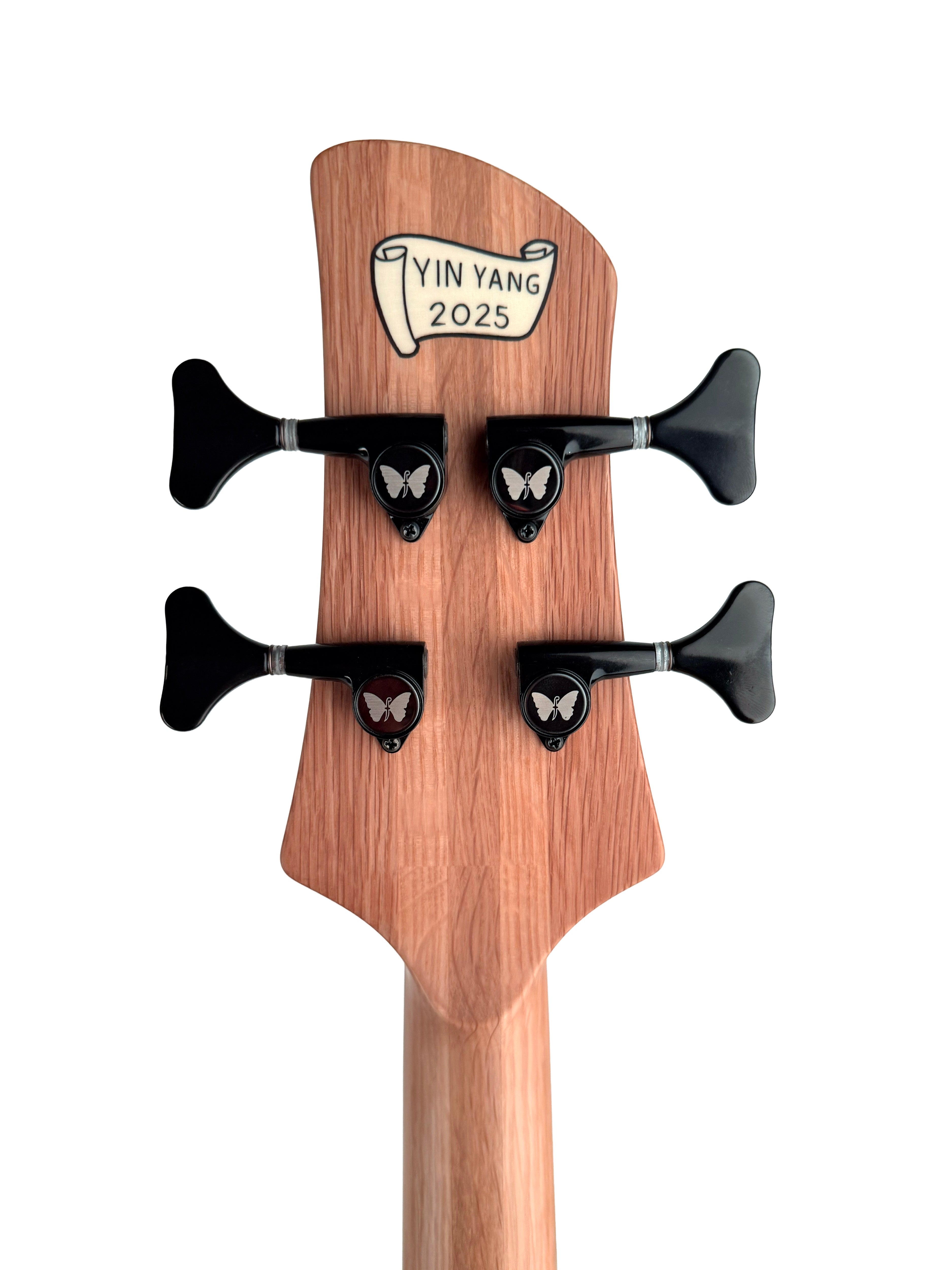 The Yin Yang Deluxe Series III features the combination (selected by Victor) of a chambered Walnut body under a spalted Maple top, along with a White Oak neck and Ebony fingerboard. This combination delivers deep yet articulate lows along with presence and clarity in the upper register, plus the body chambering gives just the right amount of “air” to the overall sound.