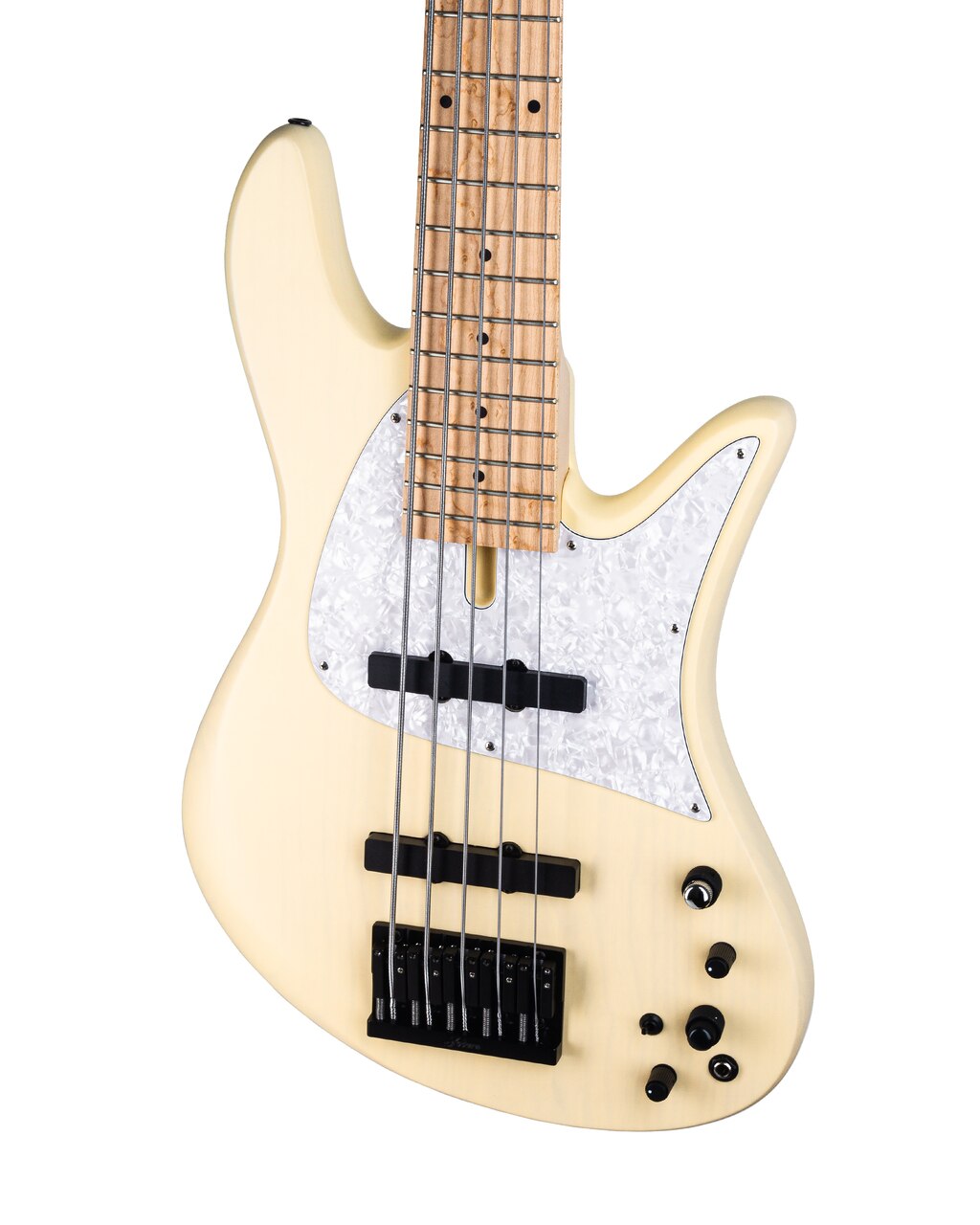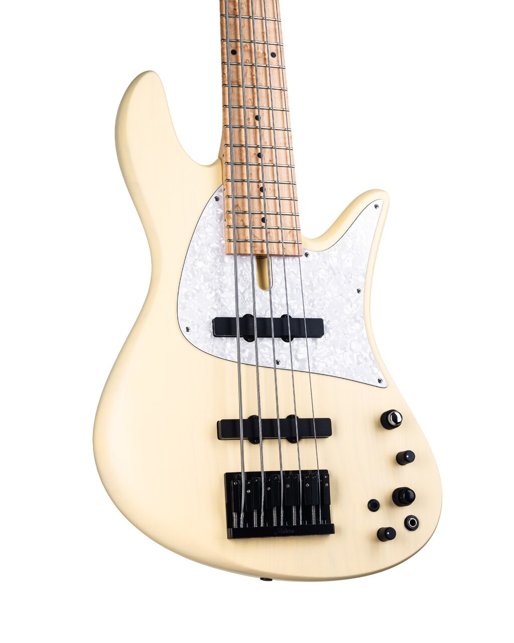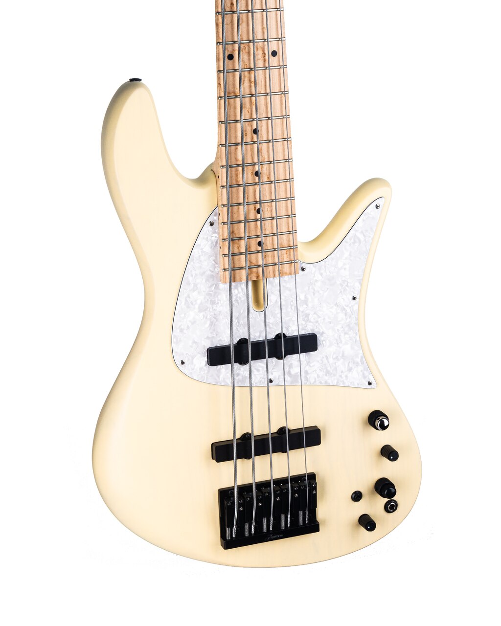 Featuring many specs from our Standard Special line, this model is styled after Joey’s own personal Fodera. The Transparent Cream finish, matching headstock, Pearloid pickguard, and maple fingerboard has a classic, premium look that has served Joey for many years.