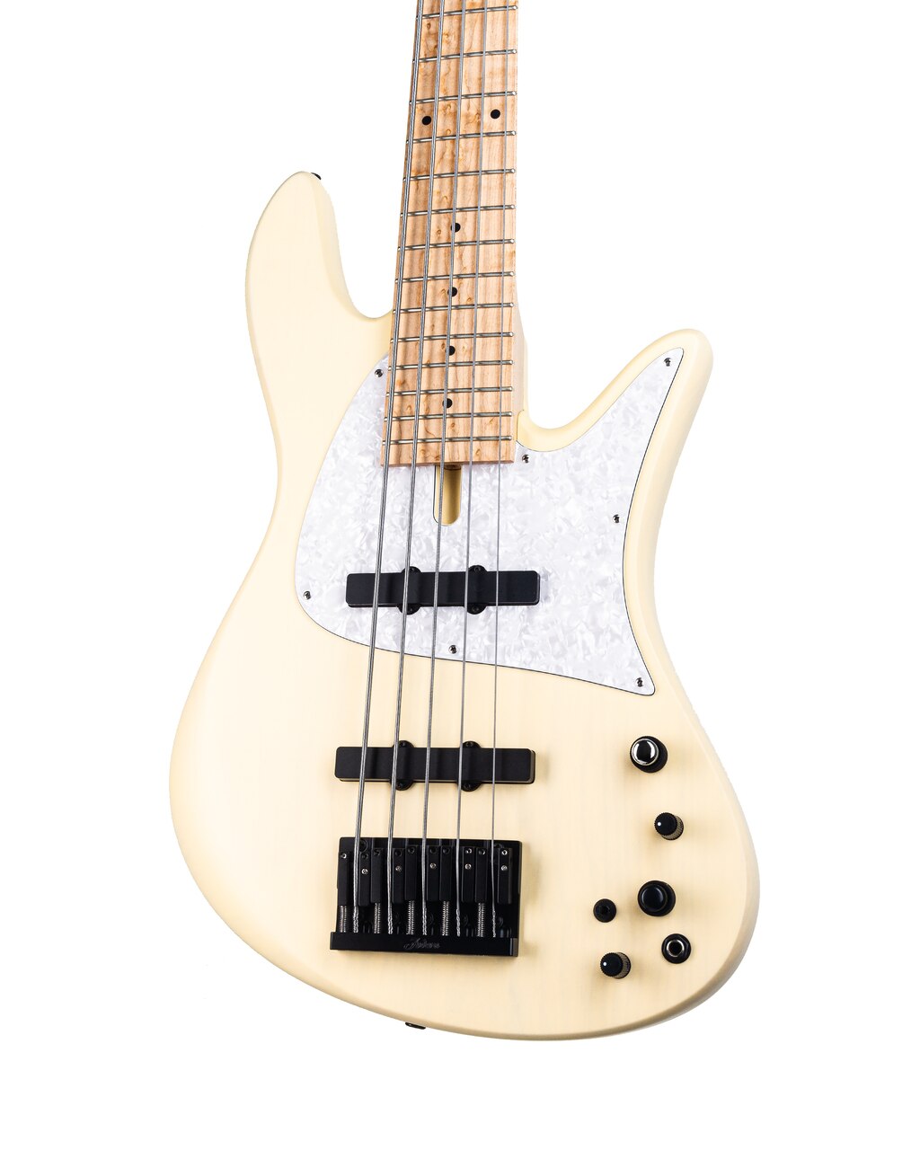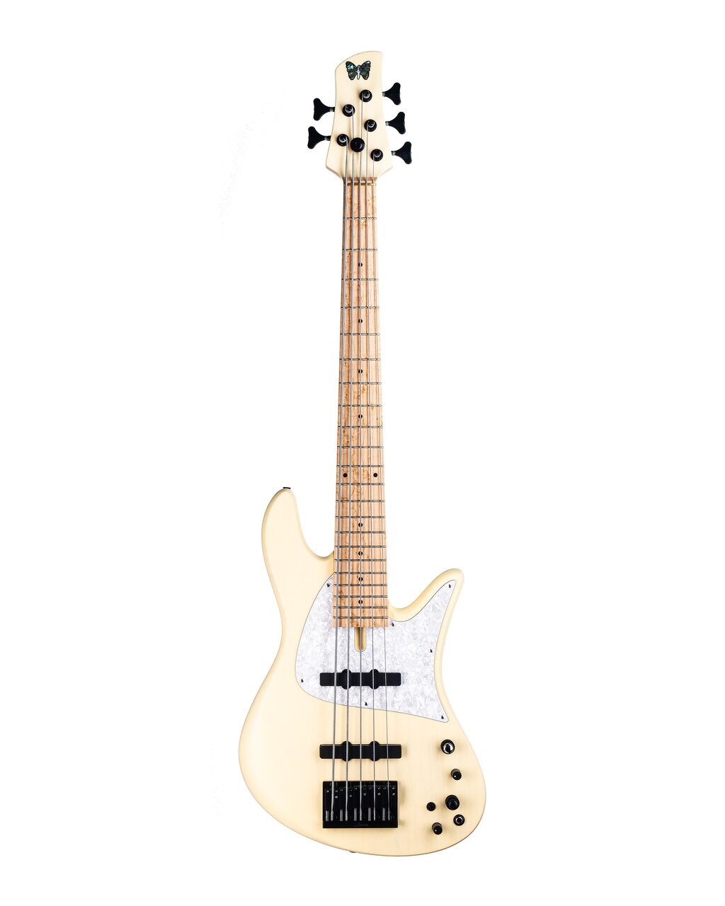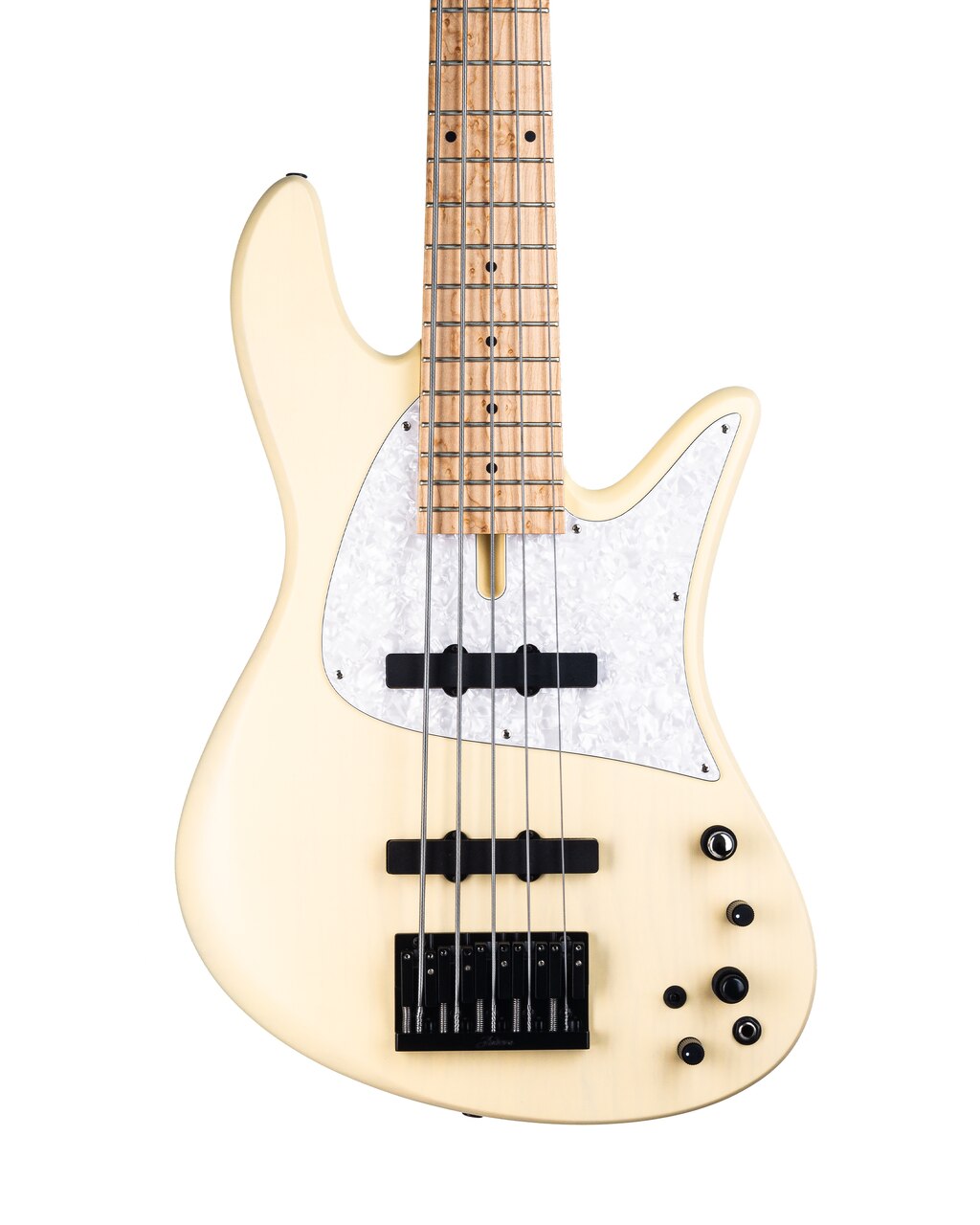 Featuring many specs from our Standard Special line, this model is styled after Joey’s own personal Fodera. The Transparent Cream finish, matching headstock, Pearloid pickguard, and maple fingerboard has a classic, premium look that has served Joey for many years.