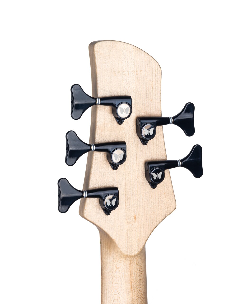 The electronics package includes a set of J/J pickups and our proprietary Fodera 3-band Preamp in the 70’s position. The body wood adds that low mid punch that cuts through the mix with this setup.