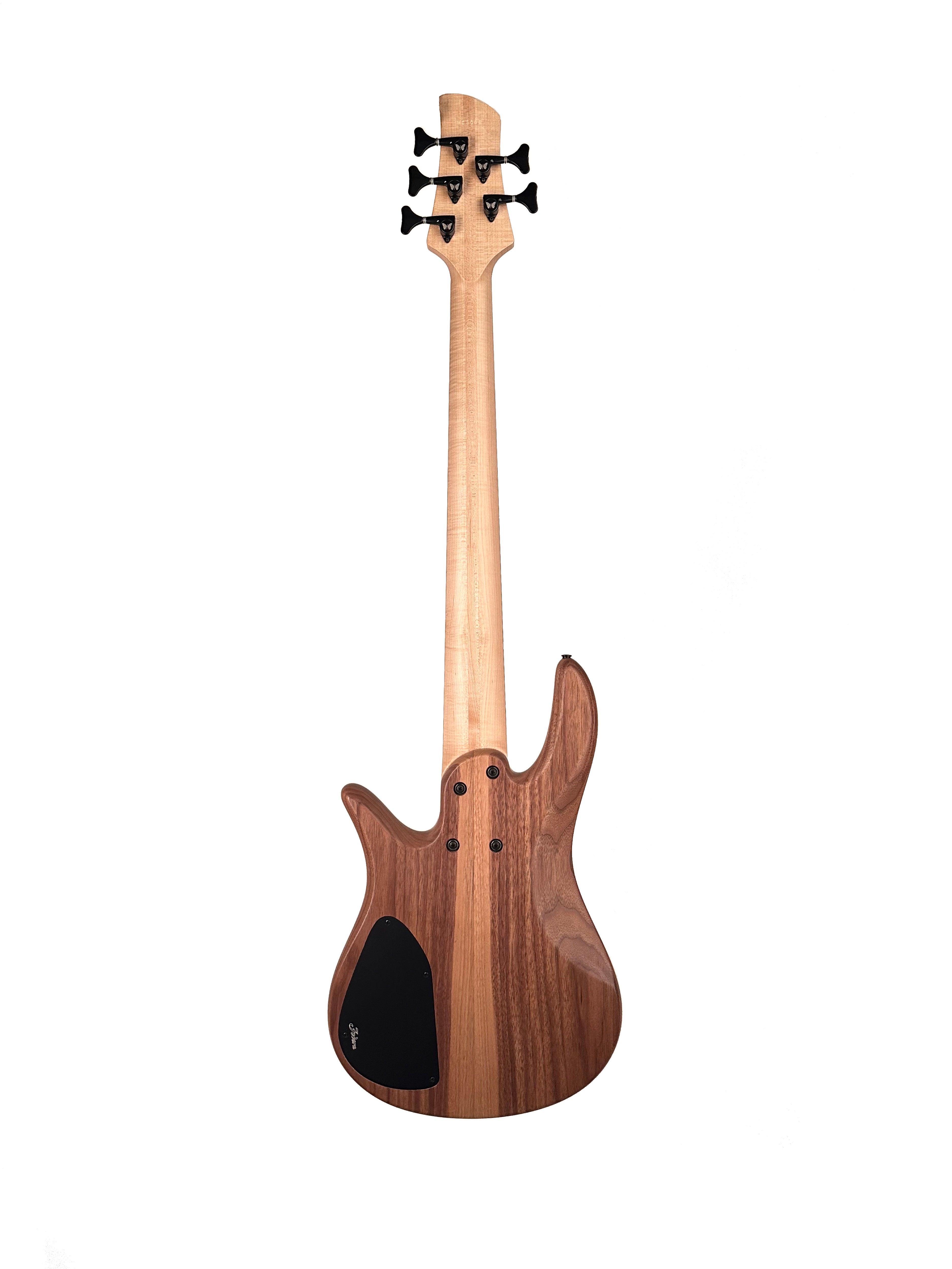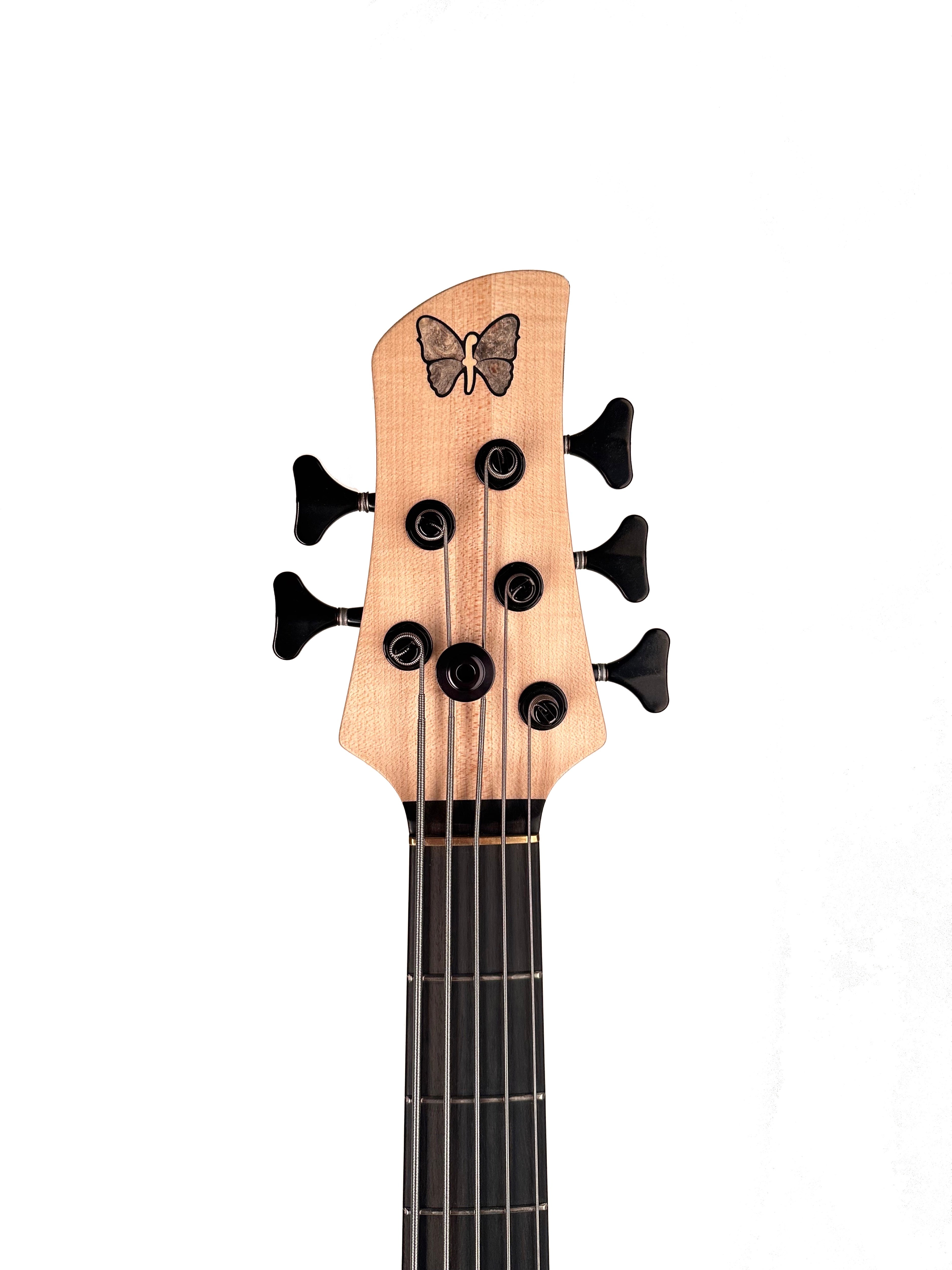 The Monarch 5 Standard blends Fodera’s aesthetics, playability, and reliability with a tonal pallet never before offered in our Standard Series. It features a Walnut body under an Ivorywood top and a 3-piece Maple neck paired with an Ebony fingerboard to deliver a massive-sounding modern tone with open lows, dark and punchy low-mids, and clear sustained highs.