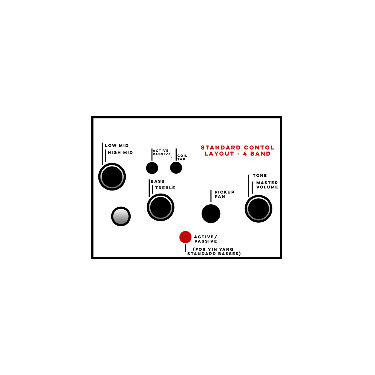 The preamp functions as an active or passive preamp and can be used with active or passive pickups. The preamp provides a shapeable active EQ, and a passive tone knob that functions in both active and passive modes.