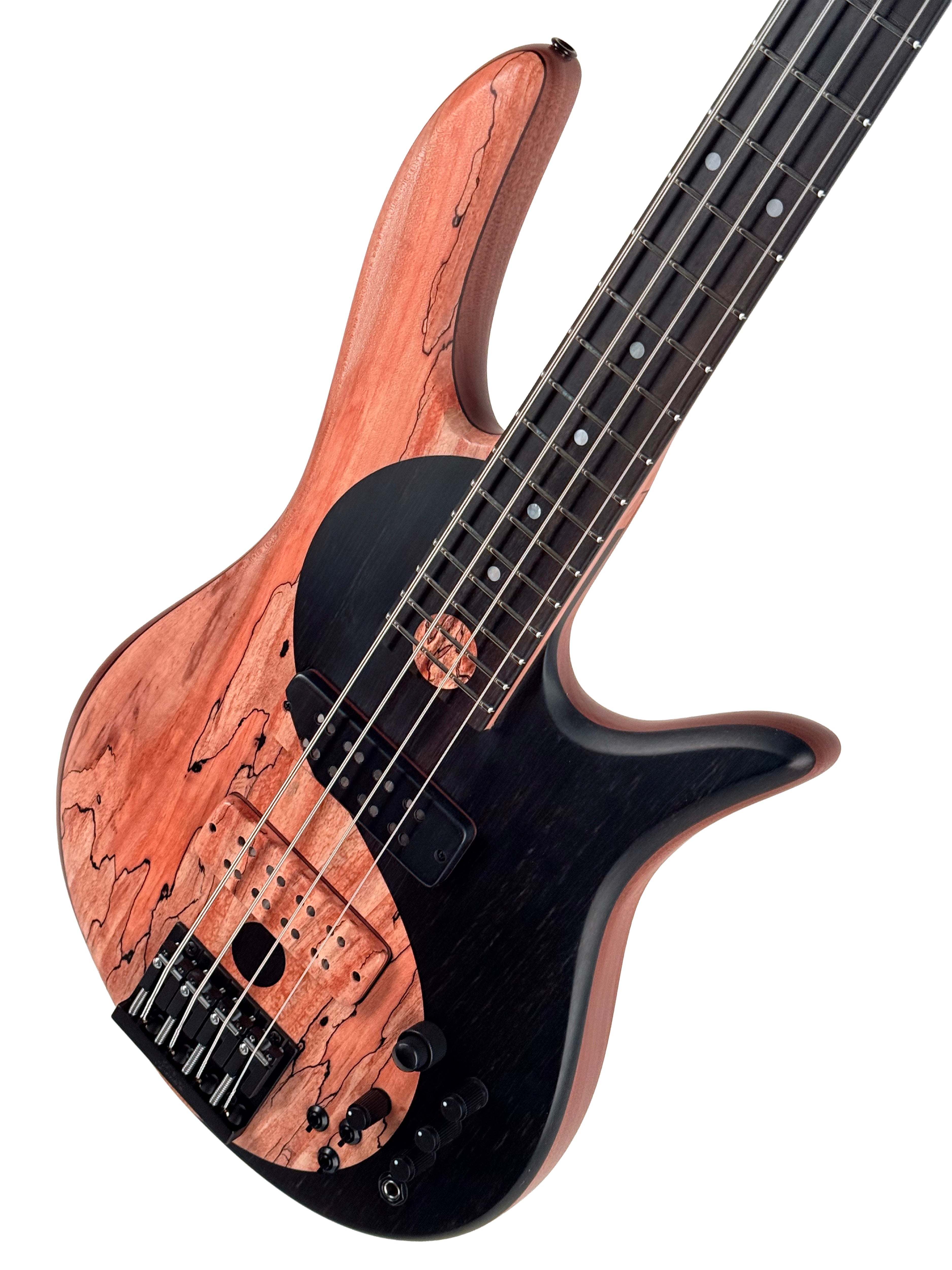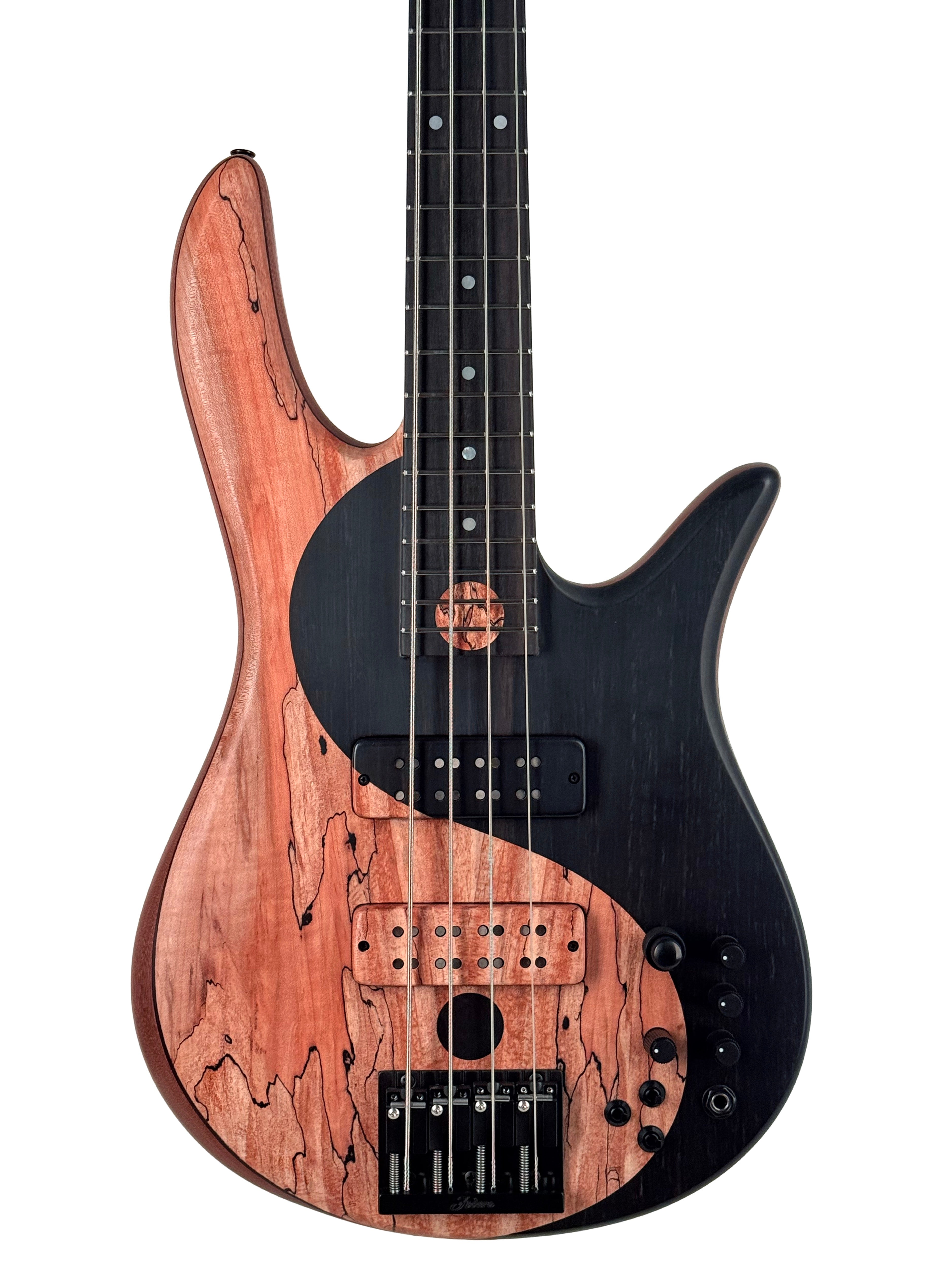 The Yin Yang Deluxe Series III features the combination (selected by Victor) of a chambered Walnut body under a spalted Maple top, along with a White Oak neck and Ebony fingerboard. This combination delivers deep yet articulate lows along with presence and clarity in the upper register, plus the body chambering gives just the right amount of “air” to the overall sound.